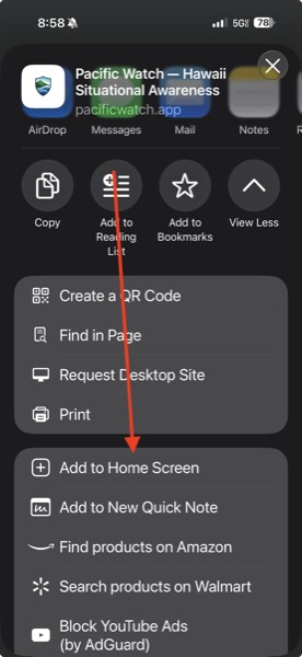 - Scroll down and tap Add to Home Screen
